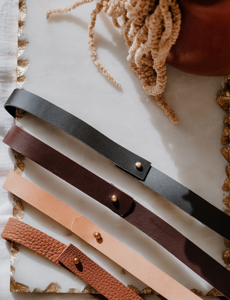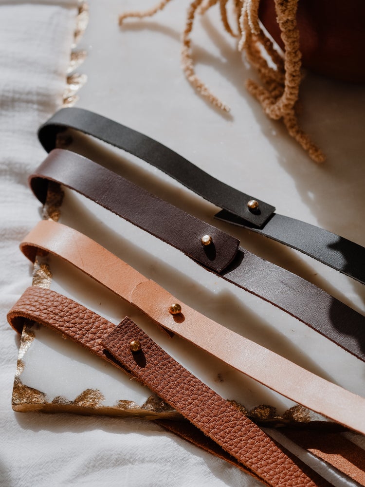 Ruban en cuir noir, marron, naturel ou camel. L'accessoire indispensable pour un chapeau plus sobre.